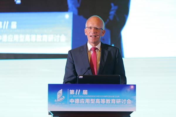 Herr Dr. Stephan Venzke, Sonderbeauftragter des niedersächsischen Ministeriums für Wissenschaft und Kultur, betonte, dass die Beziehung zwischen China und Deutschland tiefgehendsei und Deutschland großen Wert auf den Austausch mit China im Bildungsbereich lege. Viele chinesische Studierende in Niedersachsen hätten gute Leistungen. Er freute sich auf den Ausbau der Kooperation zwischen China und Deutschland im Hochschulbildungsbereich und das 12. Deutsch-Chinesische Symposium zur anwendungsorientierten Hochschulbildung.