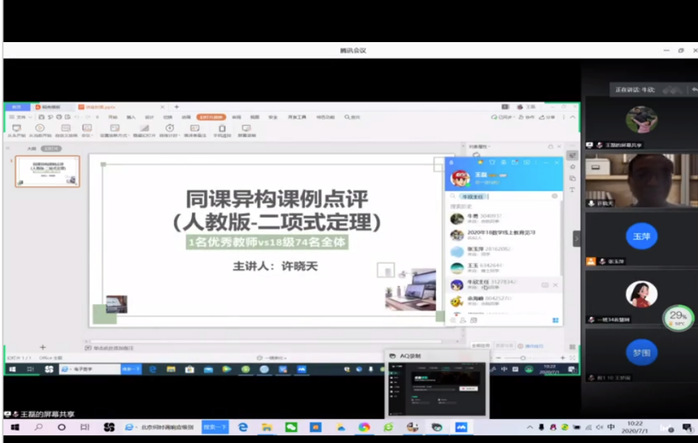 在7月1日听了合肥市教育局正高级特级教师许晓天老师关于“二项式定理”的课例分析后,18数学汤庆君同学感慨:“首先非常荣幸能够被许老师点评课程,听了许老师的讲解之后我清楚地认识到了自己上课中的不足,也对其他同学的优点更加清晰。老师果然是数学届的泰斗,说话不拖泥带水,一击即中,特别在回答我们提问的问题时,非常明确,有效解决了我的一些困惑……”。