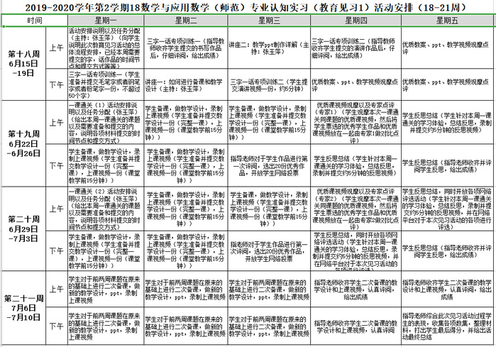 2020年初新冠肺炎爆发,师生虽无法在校园相聚,但教育教学没有就此按下“暂停键”。我校贯彻落实教育部下发的“停课不停学”等相关工作通知,迅速筹备线上教学。2月至3月,人工智能与大数据学院数学与统计系勇于探索新形式、有效设置新内容,为16级数学与应用数学专业的96位同学开设了为期四周的以教育实习反思为主要内容的“线上教育研习”实训,取得了良好效果。中国教育报将其作为典型案例刊发了专题报道《过好应用型课程线上教学关》。
