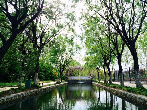 继续随性游走,一排排茂密的香樟树陈列在路的两旁,幽幽的清香伴随着清风拂来。一座白色的小洋楼豁然出现在眼前,原来这是我校韩国留学生学习上课的地方。随后漫步至一水池处,我校第八届花灯节就在此处举办,当时,地灯、水灯、绣球灯等百余盏花灯被摆放在水池两侧。摇曳的烛光在朦胧月光的映照下更显美丽。活动期间,两树之间拴上了红绳,红绳上挂满了同学们书下的心愿,譬如:“希望今夜遇见女神”,“四级必过”等。“花灯节”那天,这里夜晚的宁静悄悄溜走了,只见这里人山人海,热闹非凡。