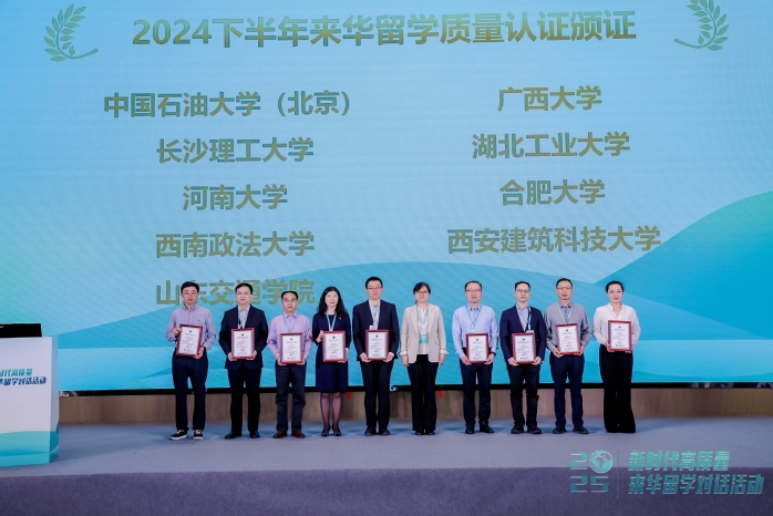 近日,由中国教育国际交流协会主办的“新时代高质量来华留学对话活动”在浙江举行。会上公布了20所2024年度下半年通过来华留学生高等教育质量认证和再认证的高校名单,我校通过再认证,认证有效期为4年。