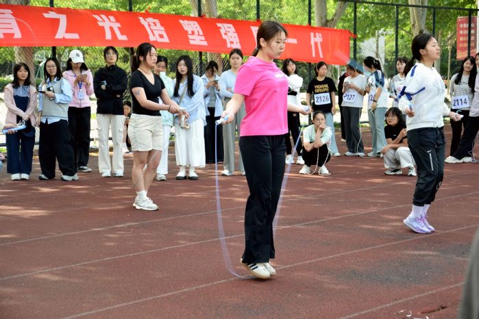 本届体育节将体测项目与传统体育赛事深度融合,构建“基础体能测试 + 特色项目竞赛”的多元化评价体系。体测环节涵盖50米跑、立定跳远、引体向上(男)/仰卧起坐(女)等国家学生体质健康标准项目,来自11个二级学院共711名同学参加。田径场上,选手如离弦之箭,全力冲刺,肌肉紧绷,尽显速度与激情;跳远区域,选手们助跑、起跳、腾空,在空中划出优美弧线。最终,经济与管理学院、先进制造工程学院和语言文化与传媒学院分获体测运动会优良率第一(66%)、第二(62%)和第三(54%),创造我校体测运动会以来最好成绩。