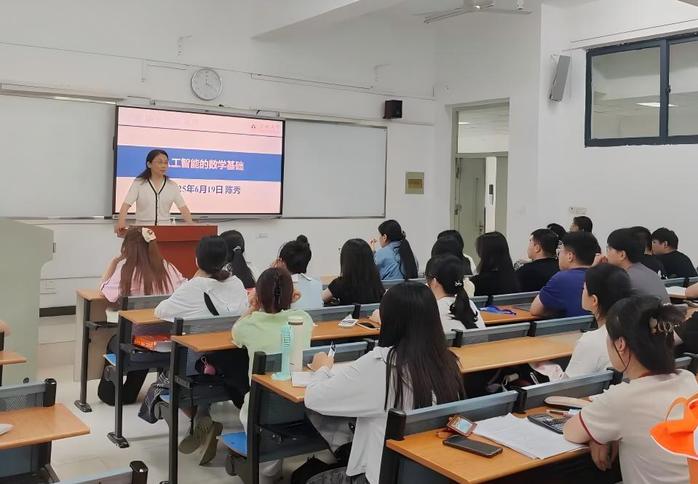 6月19日下午,副校长陈秀以“人工智能的数学基础”为题,为23、24级研究生带来“思政+专业”融合课。她以图灵理论为切入点,梳理人工智能发展历程与重大突破,展现我国政策布局与创新应用,以《哪吒之魔童闹海》为例探析科技与文化融合的密码。结合《教育强国建设规划纲要》,她强调STEM教育与数学基础的重要性,叮嘱学生拥抱技术变革,重构学习范式。