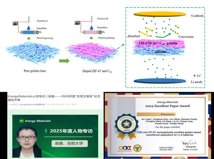 图3 逐步静电纺丝法制备功能隔膜示意图及文章获奖人物专访和获奖证书
