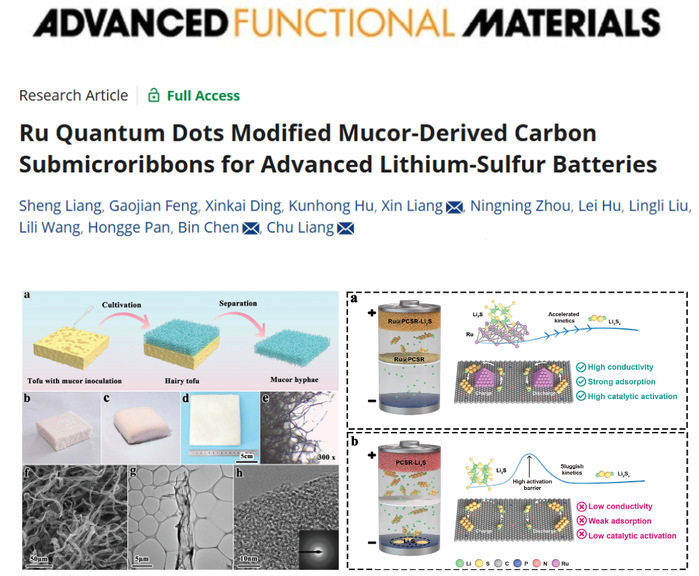团队创新性地从中国传统美食毛豆腐中分离毛霉菌菌丝,并基于该菌丝合成碳亚微带,用于锂硫电池改性研究。该研究成果以“Ru Quantum Dots Modified Mucor-Derived Carbon Submicroribbons for Advanced Lithium-Sulfur Batteries”为题,发表在《Advanced Functional Materials》上(DOI: doi.org/10.1002/adfm.202420162)。梁升为第一作者,梁鑫为通讯作者,欧美黑人巨大videos精品_欧美黑人巨大xxxxx_欧美黑人乱大交_欧美黑人乱大交_欧美黑人牲交videossexeso_欧美黑人添添高潮a片www_欧美黑人添添高潮a片www_欧美黑人性暴力猛交喷水黑人巨大能源材料与化工学院为第一完成单位。