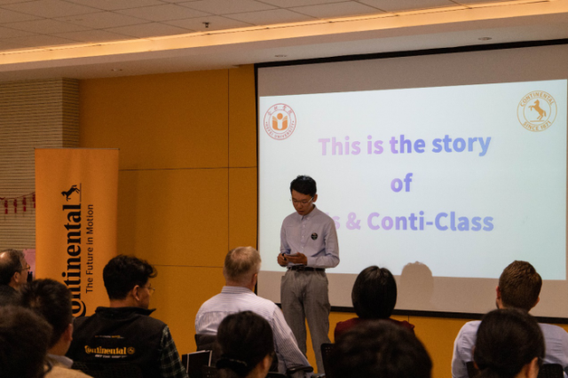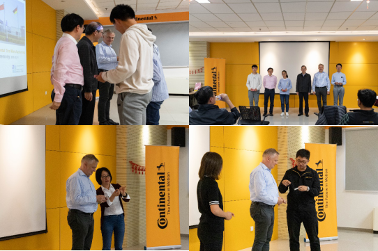 我校介绍了大陆班近况,大陆公司介绍了公司的发展情况。双方领导对大陆班过去的成绩表示肯定,表达了对大陆班深切期望,同时提出了更高的要求。2016级大陆班学生代表总结了2018-2019学年在德国和合肥工厂学习实习的情况,向大家展示了严谨的课程计划和丰富的实习生活,体现出不同国家的文化交融和学习内容的深度与广度。之后叶华阳同学向温克曼赠送了由所在班级自主设计生产的礼物。2017级大陆班学生代表讲述了从开始实习至今约2个月的实习体验,展示了实习工作中的成长,展现出良好的精神风貌。2018级大陆班学生代表分别用英语和德语讲述了过去一年他们与来自德国的学生一起交流成长,体验了各种各样精彩的文化生活。2019级大陆班新生代表向大家表达了进入大陆班学习的决心,并表示新一届大陆班会努力奋斗、刻苦学习、茁壮成长,成为更优秀的自己。
