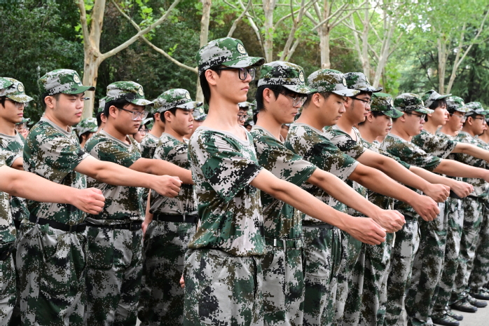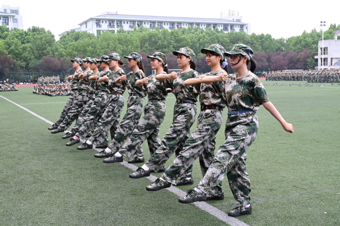 训练场上,身着统一迷彩服的新生们,排成有序的方阵,在教官们严格而耐心的纠正下,一丝不苟地训练着步伐节奏、队列对齐、动作力度、口号配合、整体协调等要点,每一个环节都力求精准。铿锵有力的脚步声回荡在校园之中,精神饱满的状态诠释着青春的活力,坚定执着的态度展现着他们的成长与蜕变……