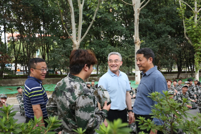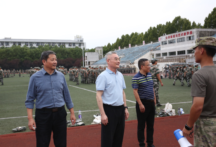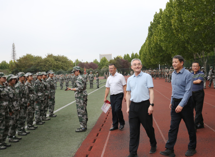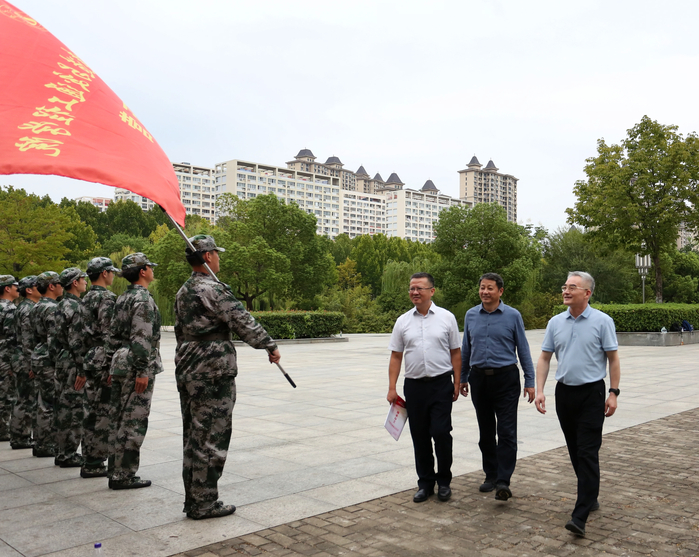 9月22日下午,校党委书记邬平川,党委委员、副校长白义香来到学校操场,亲切看望正在参加军训的2025级新生,并向全体教官致以诚挚感谢。