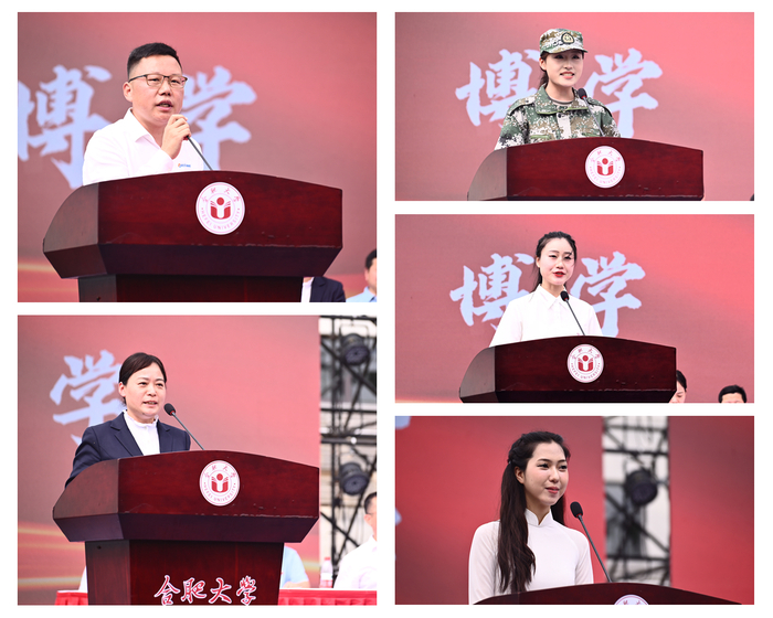 在开学典礼上,本科新生代表、文化与旅游学院汉语言文学专业的杨舒羽,研究生新生代表、智能建造与交通工程学院道路交通运输专业的牛怡然,留学生代表、国际教育学院旅游管理专业越南籍学生阮欣怡,优秀校友代表、能源材料与化工学院2009届毕业生张海喜,教师代表、人工智能与大数据学院教师汪彩梅分别致辞。