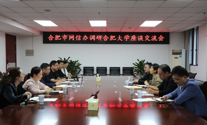 10月14日,合肥市委网信办副主任王丛一行来校,就校地网络工作协同开展座谈交流。校党委副书记周飞出席并主持座谈会。