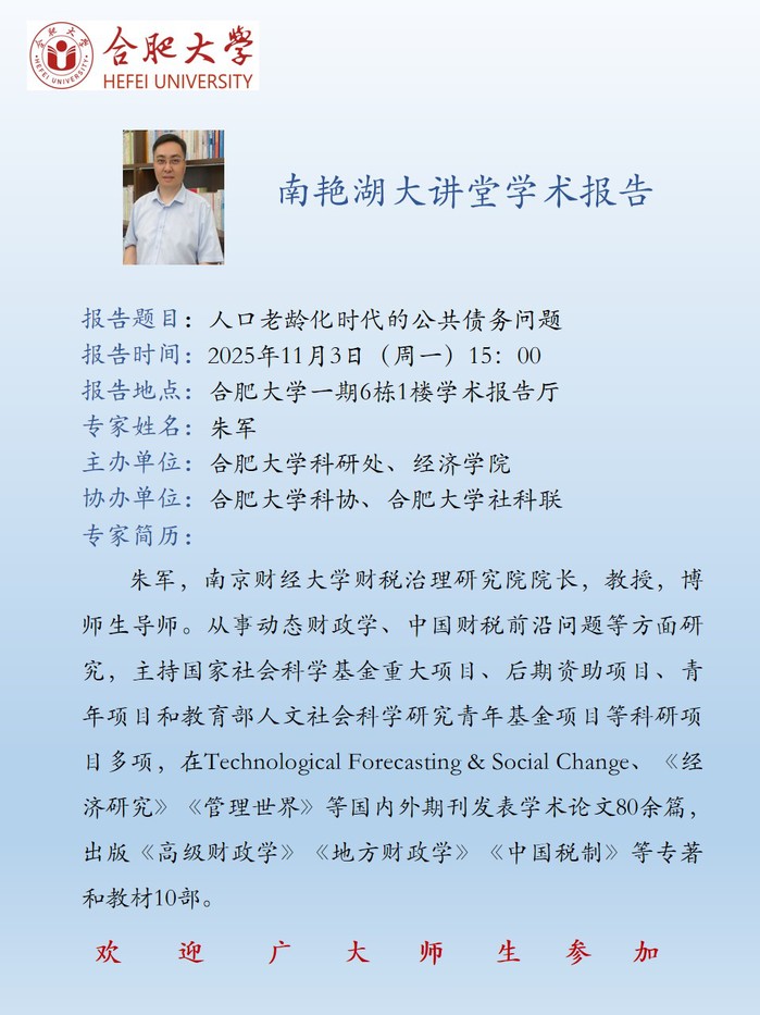 【南艳湖大讲堂】人口老龄化时代的公共债务问题
