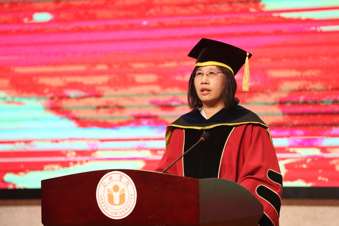 吴春梅首先向省市领导对合肥学院的关心支持表示感谢。她强调,合肥学院开展双元制大陆班项目是学校坚持“地方性、应用型、国际化”办学定位的具体体现,首届“大陆班”21位同学的顺利毕业和高质量就业,是我校应用型人才培养和国际化合作办学再上新台阶标志性成果。同学们孜孜不倦的学习精神、艰苦奋斗的品德、创新创业的智慧,为该项目的进一步推进增强了信心。