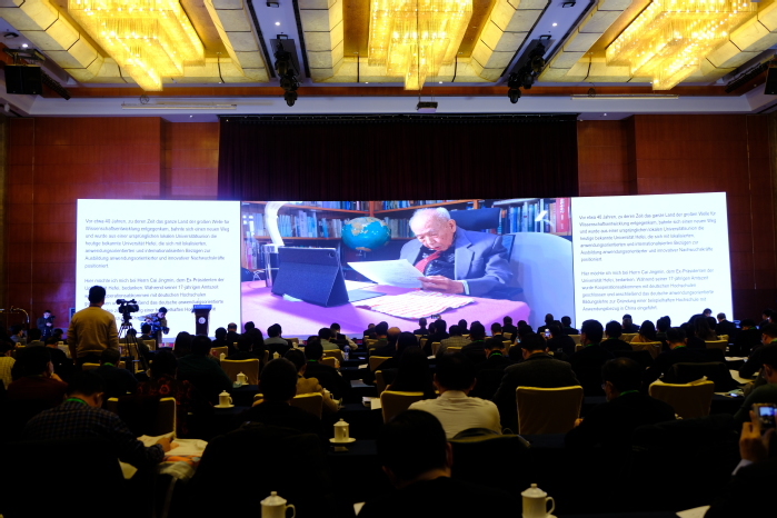 开幕式上,厦门大学潘懋元先生通过视频对本次研讨会给予指导和寄语。他表示,合肥学院勇立潮头,是应用型、国际化的知名高校,合肥学院用应用型人才培养的教学方案,搭建人才交流合作的平台,为产教融合的开展提供动力。希望通过本次大会的开展,中德合作能顺利开展,产出累累硕果。