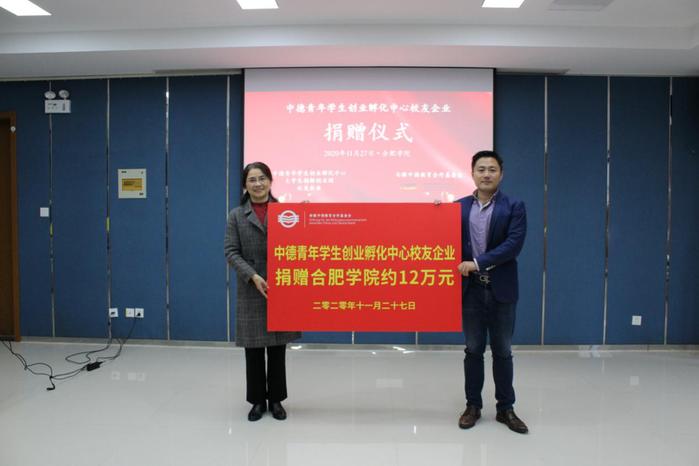 Am Morgen des 27. November veranstaltete unsere Universität eine Spendenzeremonie der Alumni- Unternehmen hinsichtlich des Inkubationszentrums für chinesisch-deutsche junge Studierende (im Folgenden abgekürzt als Inkubationszentrum bezeichnet). Frau Chen Xiu, Vizepräsidentin der Universität Hefei und Vorsitzende der chinesisch-deutschen Stiftung für Bildungskooperation Anhui (im Folgenden abgekürzt als Stiftung bezeichnet), nahm daran teil. Herr He Shikun, Direktor der Finanzabteilung und Generalsekretär der Stiftung, Herr Liu Peiping, Direktor des Inkubationszentrums, und Sun Hong, stellvertretender Direktor, Frau Zhou Zhou, stellvertretende Direktorin des Stiftungsverwaltungsbüros, und Vertreter von 21 Alumni-Unternehmen des Inkubationszentrums nahmen an dieser Spendenzeremonie teil. Die Zeremonie wurde von Frau Liu Jinping, der Direktorin des Stiftungsverwaltungsbüros, geleitet.