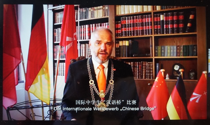亚历山大·巴德罗在视频致辞中说,施特拉尔松德孔子学院成立5年来,始终致力推广中国语言文化,成效显著。“汉语桥”比赛不仅激励有语言天赋的学生努力学习中文,而且为德中两国文化交流搭建了友谊之桥。