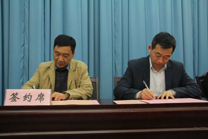 校长张文兵与系部代表建筑工程系、经济系分别签订“2015年就业工作、安全稳定工作和消防安全工作责任书”。