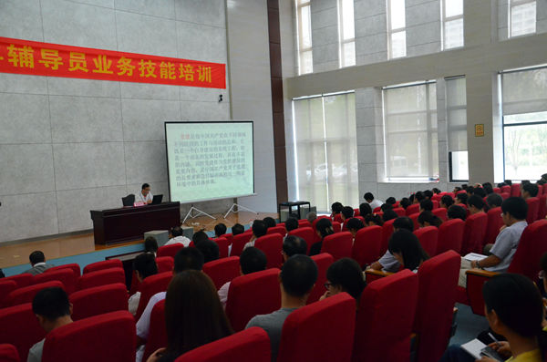 为进一步加强学校辅导员队伍建设,提升辅导员业务能力水平,搭建辅导员学习、交流平台,增强学生管理工作的针对性和实效性,8月25至26日,我校举行2015年辅导员业务技能培训。25日的培训校在图书馆学术报告厅B厅举行,合肥学院党委副书记丁明、合肥职业技术学院党委副书记胡其云出席会议,各系党总支书记、副书记,学工办主任、团总支书记与全体辅导员以及合肥职业技术学院相关教师参加培训,培训由校学工部部长董承军主持。
