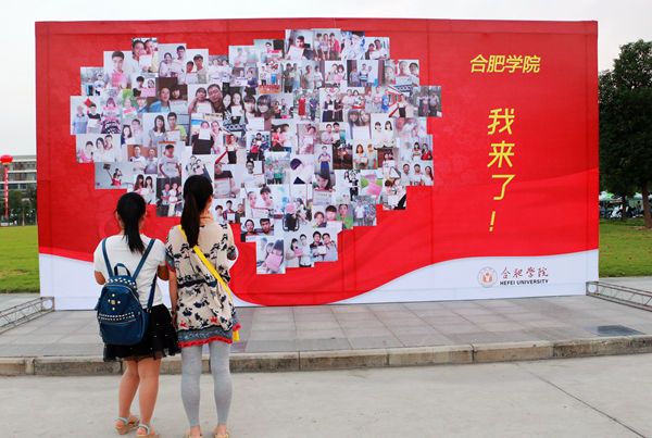 我与录取通知书合影”、万人头像构成的2015照片墙、迎新照片板,一个又一个的创意,让合肥学院2015级新生们的报到日充满惊喜。