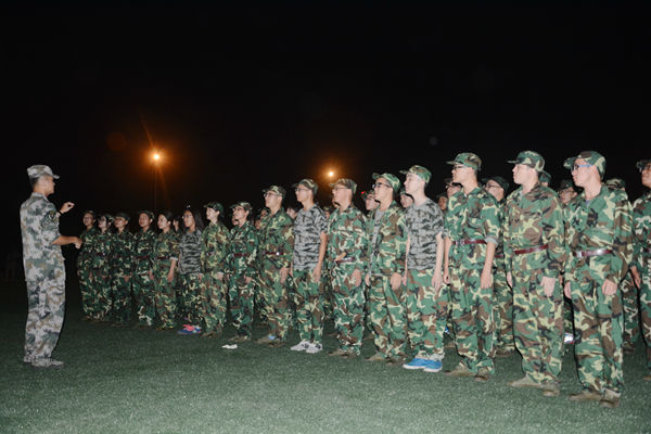 严格的训练中,亦有轻松一刻。随着夜幕的降临,训练场上传来阵阵欢笑声,原来是为增进对彼此的了解,新生“非诚勿扰”的游戏融入军训中,获选者必须向场下的同学们进行自我介绍。同学们热烈掌声与欢呼声中,14连的教官演唱了一首红歌,伴着歌声,同学们不由自主地打起了节拍,轻声应和着。“他们都很天真、单纯、可爱,和他们一起很开心。”教官表示,“其实军训希望给他们精神上的教育,让他们懂得坚持,加强同学们凝聚力,更增加他们的国防意识。