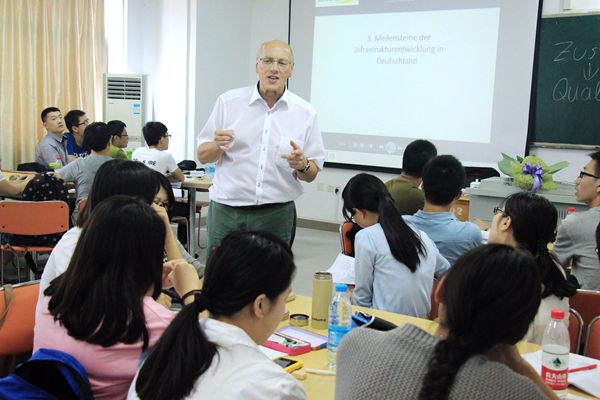 9月6日至17日,我校中德物流专业客座教授,德国国家交通安全协会主席,德国各州交通部长联席会议副主席,前联邦交通、建筑与住房部部长库尔特·博德维希教授在管理系中德合作物流专业讲授专业课程,授课内容为交通基础设施和物流课程。