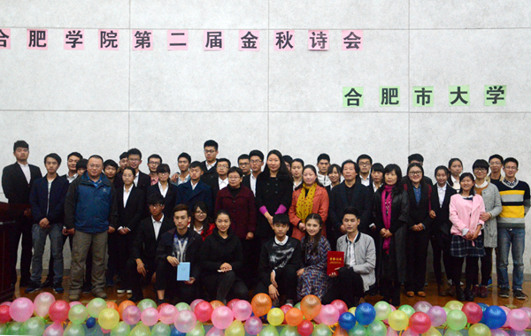 11月7日,由合肥学院中国语言文学系、合肥学院社团联合会主办,由揽月诗社承办的第二届“金秋诗会”暨合肥市大学生诗歌大赛决赛于图书馆报告厅(B)圆满落下帷幕。据悉,本次活动是以“纪念杨承宗先生,纪念抗战胜利七十周年,纪念合肥学院建校三十五周年”为主题而积极开展的。此次比赛旨在丰富大学生的课余生活,提高大学生人文素养,为我校大学生生活增添色彩和乐趣,促进各高校诗社的交流与合作。