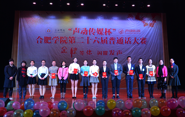 11月20日晚,由合肥学院党委宣传部主办,合肥学院广播台承办,合肥声动文化传媒有限公司冠名的“声动传媒杯”合肥学院第二十六届普通话大赛于我校致用礼堂顺利举行。据悉,本届普通话大赛共有400余人报名参加,经过初赛和复赛的层层选拔,最终共有12位选手脱颖而出。比赛旨在引导大学生学好普通话,说好普通话,通过普通话的桥梁,连通你我,沟通世界,学会用语言的交流拉近心灵的距离,用话语的沟通传递真爱的情谊。