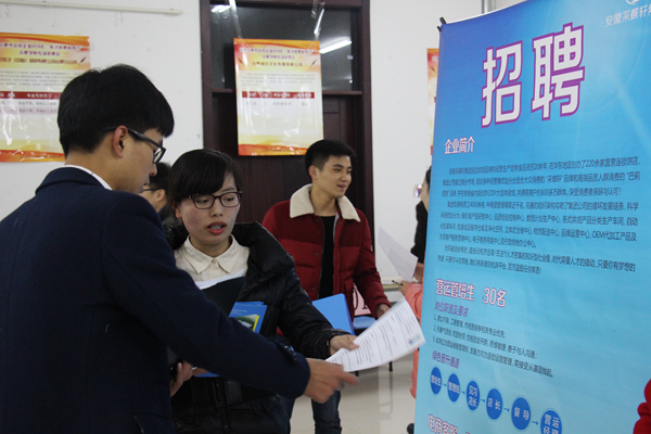 参加此次双选会的用人单位主要来自安徽、北京、上海、浙江、深圳、江苏等十多个省市,涉及电子、计算机、生物医药、化工、管理、金融、教育、销售、新媒体等各方面。其中,2015南昌市“招才引智”小分队还专门设有7家当地知名企业进行现场招聘。双选会现场气氛热烈,人头攒动,同学们手持精心准备的简历,积极与招聘人员交流,主动了解薪资、福利、工作时间等相关情况。本届双选会在给应届毕业生提供可观就业机会的同时,还吸引了部分中低年级的学生前来了解就业信息。
