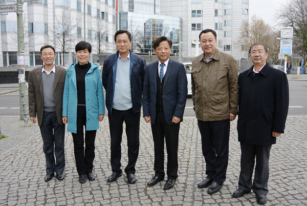 代表团一行在德国期间还拜访了中国驻德国使馆教育处,驻德教育处公使衔参赞董琦教授听取蔡敬民对我校国际合作和应用型改革情况,以及针对中德教育合作示范基地与基金的建设方案的汇报。在德期间,蔡敬民还专程访问了汉诺威应用科学大学,拜访下萨克森州科学文化部。