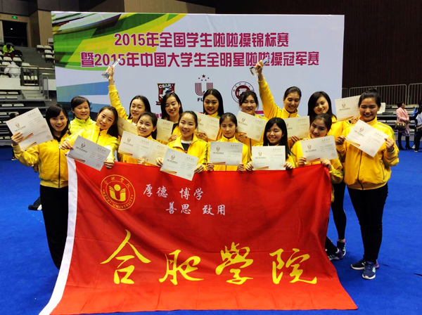 12月11日至13日,由中国大学生体育协会、中国大学生体育协会健美操艺术体操分会、中国中学生体育协会健美操分会等联合举办的2015年全国学生啦啦操锦标赛暨2015年中国大学生全明星啦啦操冠军赛在福建师范大学体育中心体育馆举行。我校周瑞英老师带领的14名同学组成的代表队参赛,经过3天的激烈角逐,共斩获花球啦啦操规定套路第一名,爵士啦啦操第三名。