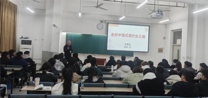 中国式现代化的过去、现在和未来是什么样的?大学生在新征程上应该书写怎样的答案,做出怎样的贡献?12月5日下午,党委书记王其东以“走好中国式现代化之路”为题,为23级新能源、23级能源化学工程专业的学生带来了一堂生动的“形势与政策”课。