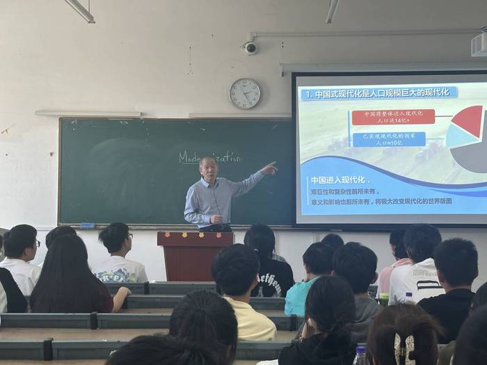 5月14日下午,校党委书记王其东以“读懂中国式现代化”为题,为23级计算机科学与技术、22级数据科学与大数据技术(双元制大众班)、22级无机非金属材料工程(双元制大众班)、22级智能制造工程(双元制大众班)学生讲授形势与政策课,受到热烈欢迎。