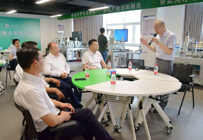 在大众学院,张洪彬一行实地参观调研了智能制造系统集成技术应用创新中心、数字孪生技术及应用工程中心和多模态工业设备状态监测实验室,认真听取了大众学院建设发展情况,充分肯定了大众学院在产教融合和专业、就业、产业“三业一体”应用型人才培养方面取得的成果,鼓励学院凝练特色,创新发展思路,加强校企协同育人,切实提升服务地方经济社会发展的能力和水平。