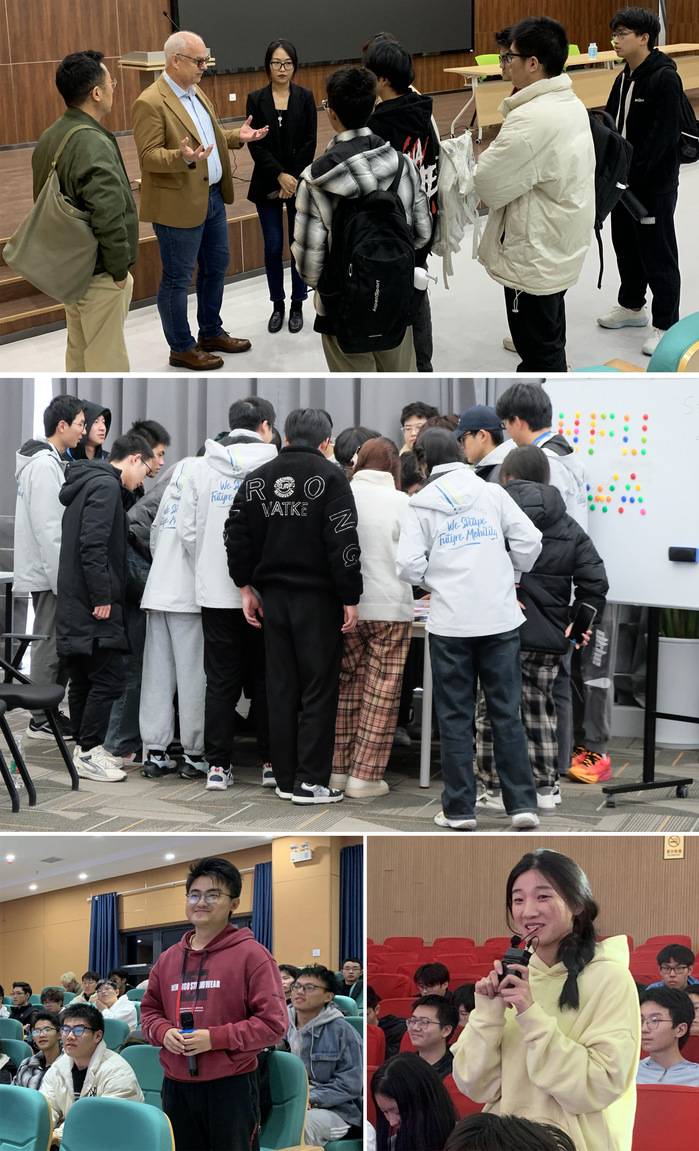 2023-2024学年第一学期,大众学院联合大众安徽举办了5次企业客座教授理论授课与认知实习活动。学校客座教授、大众安徽首席执行官葛皖镝博士、首席财务官哈约根博士、首席技术官吕尔曼博士、首席数字官高乐夫先生和首席制造官施耐德先生,为学生进行精彩授课。