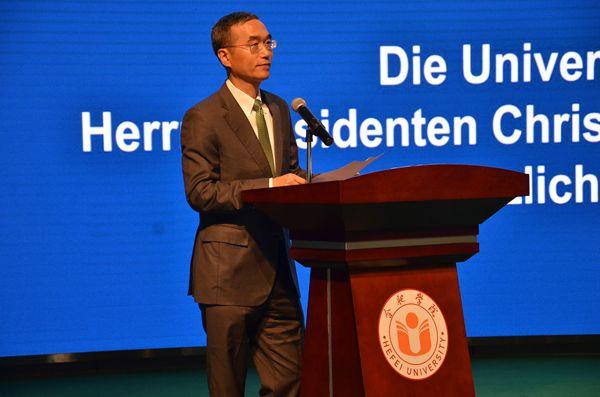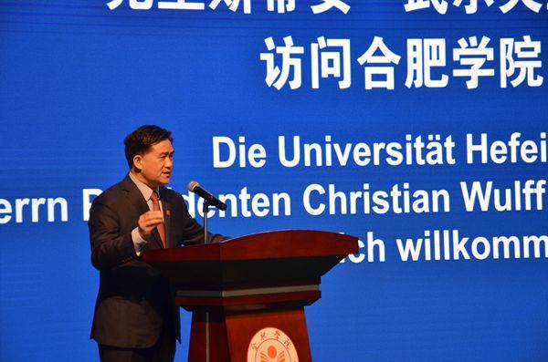 Präsident Wulff als Botschafter von der chinesischen und deutschen Freundschaft leistet einen großen Beitrag zur freundlichen Beziehung zwischen China und Deutschland und fördert die Zusammenarbeit und den Austausch zwischen der Provinz Anhui und Niedersachsen. Er beachtet darüber hinaus auch sehr den Aufbau und die Entwicklung der Universität Hefei. Während der Konferenz der Weltfertigungsindustrie 2018 besuchte Präsident Wulff noch einmal unsere Universität, was sowohl die tiefe Freundschaft zwischen der Provinz Anhui und Niedersachsen, als auch seine Fürsorgegegenüber unserer Universität zeigte.